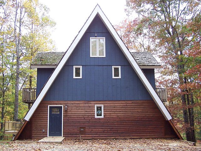REDUCED $16,050 - A large & unique mountain A-Frame that provides both a wooded & seasonal ridge-line view through its massive glass window wall & from its new deck. Ideal for a large family with a main level bedroom w/bath, 2 bedrooms private baths & a ladder accessed loft on the upper levels, & a large den/game room on the lower level, it offers its owners & guests a quiet private retreat in beautiful Powder Horn Mtn. The main living area has a soaring vaulted ceiling with a massive stone fireplace and inside wood storage. A recently remodeled galley style kitchen with SS appliances leads to the great room living & dining area. Powder Horn Mtn. is a well established gated resort & residential community offering a large rustic clubhouse, a lovely chapel, 3 stocked fishing & boating lakes, sports courts, kid's playground, rustic camping & picnic area, a pristine native trout stream & access to a trail system with miles of well maintained hiking trails. Just 6 miles from the Parkway & short drives to Boone, Blowing Rock, the Jeffersons, the Wilkesboros, Lenoir & Hickory & the Piedmont