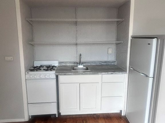 The living and kitchen has a complete open concept and features hardwood floors throughout! The brick accent wall gives the unit tons of character! The kitchen includes a gas range and pantry, great for storage!