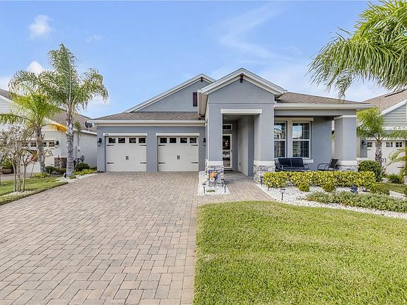 Welcome to 206 Venetian Palms Blvd, where thoughtful design meets modern comfort in one of New Smyrna Beach’s most sought-after communities. Ideally located for commuters heading toward Orlando or anyone craving a quick drive to our beloved beach, this 2019-built home stands out with extensive upgrades and low-maintenance living. A charming covered front porch invites you inside, where wood-grain ceramic plank tile flows seamlessly through the main living areas and primary suite. The open-concept floor plan makes entertaining effortless—from the gourmet kitchen featuring 42" cabinetry, quartz countertops, an island, and a stylish quatrefoil backsplash, to the dining area, living room, and Florida Room overlooking a tranquil pond. Step outside to the extended paver patio, perfect for relaxing or hosting friends. Upgraded plantation shutters complement hurricane-rated windows, offering both style and peace of mind. Each bathroom has been finished with custom tile showers—one with a tub/shower combo and two with walk-in showers, including a handicap-accessible design. The primary suite impresses with tray ceilings, two walk-in closets, and a linen closet for extra storage. Additional features include a laundry room at the center of the home for convenience and an oversized split 3-car garage, with one tandem bay equipped with ceiling-mounted storage racks supporting up to 600 lbs each. Paver walkways have been thoughtfully expanded for handicap accessibility, and the landscaping is low maintenance, giving you more time to enjoy the Florida lifestyle. This move-in-ready home truly shines among the rest—schedule your private showing today and discover why life at The Palms is easy living done right.