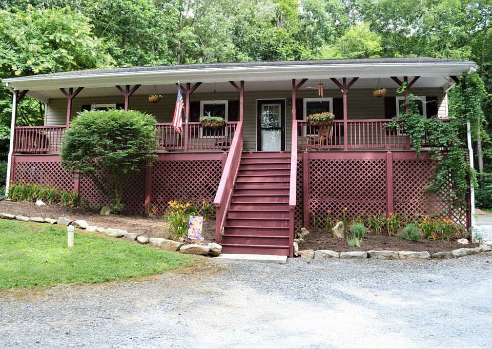 Great location in Campbell County close to Route 460 with tons of privacy. This gorgeous ranch style home offers an open floor plan, a brand new kitchen with custom cabinets and stainless steel appliances, the kitchen opens up to the dining area which has access to the back deck and the great room, all completed with new tile flooring. NEW windows, hvac system and water heater! Main level master bedroom with ensuite, and walk-in closet. Down the hall are two spacious bedrooms with a full bath. Terrace level laundry, (main level laundry hookups for stackable) tons of opportunity for a den or additional bedrooms with rough in bathroom. Large 1.88 acre lot with fenced area off the back deck. Huge 48x6 rocking chair front porch that has been painted. Gravel has just been laid for plenty of parking for family or guests. Large front yard great for outdoor activities.