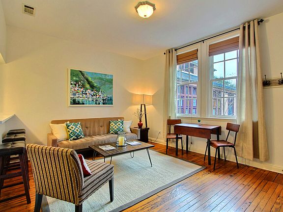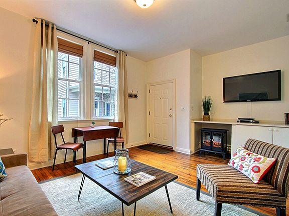 This inviting two-bedroom, one-bathroom cottage is thoughtfully designed to make long-term stays feel effortless. The spacious living room features comfortable seating and abundant natural light, creating a welcoming spot to relax after a day exploring the city or working remotely. A fully equipped kitchen includes everything you need to cook at home, from cookware and appliances to a microwave, coffee maker, and tea kettle. Flat-screen TVs in every room, high-speed Wi-Fi, and cozy furnishings ensure that you have the modern comforts you rely on day to day.