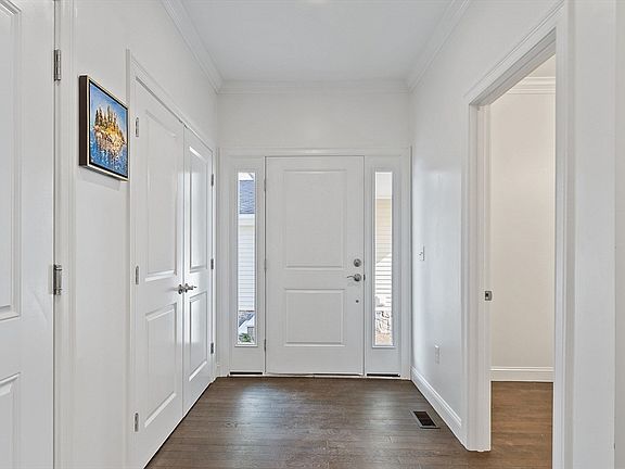 Step into your stunning, south-facing, light-filled townhome with shimmering water views. The expansive, open concept layout on the main floor features a chef's kitchen with stainless appliances, range with hood, a dining room for festive gatherings, and gorgeous living room with fireplace. A wall of windows and slider beckons you to the balcony overlooking the manicured lawns and serene pond where you may spot waterfowl and kayakers or fish for trout. 9ft ceilings with recessed dimmable LED lighting throughout, large closets, expertly crafted millwork, and an option for an elevator are just some of the many features you'll appreciate. 3 generous bedrooms including the primary suite and 3.5 bathrooms provide ample space for residents and guests. Choose to finish the lower level as an upgraded option. A lovely covered patio provides outdoor space for alfresco dining open to the flat backyard common lawns with adjacent boat launch. Options galore.Waterfront living at its finest!