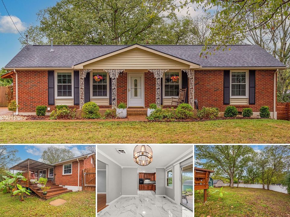 Step into this classic ranch home located in Goodlettsville city limits! A welcoming front porch, covered back deck, and spacious yard with mature trees set the scene before you even walk inside. Hardwood floors and new tile bring a fresh feel throughout. The kitchen features custom cabinets, and the bathroom offers a tiled walk-out shower. With three bedrooms, there’s space for family, guests, or a home office. The fenced backyard offers a raised garden bed, two storage sheds, and plenty of open space to enjoy, with wildlife often seen in the area. Extra driveway parking adds convenience. Recent improvements include a new roof, new tile, and a dining room light fixture. The home is move-in ready with refrigerator, washer, dryer, blinds, and outdoor grill included. Conveniently located near I-65, area parks, shopping, and dining — and just 20 minutes from downtown Nashville, this home combines comfort, convenience, and outdoor living.