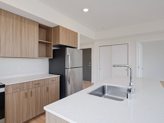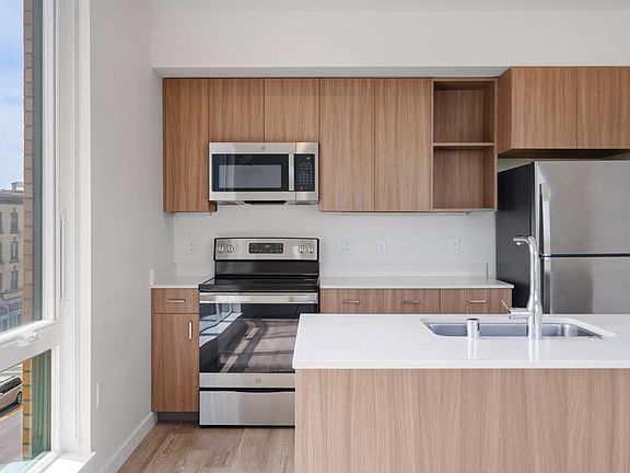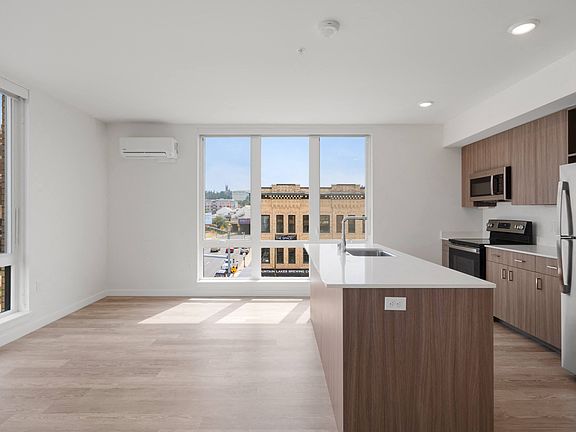 - Exterior features: BILT Rewards, Barbecue, Bike score: 79, Biophilic design, Communal dining, Comprehensive Rainwater Management System, Cozy nooks for work or play, Dog grooming stations, Dog relief station, EV charging stations, Fire pit, Flooring: Wood, Flush cabinetry with two-toned wood grain, Garden, LEED Gold Certified Property, Local vegetation to support pollinator expansion, Low VOC, sustainably certified materials, Low flow fixtures, Modern, open kitchen layout, ORI Smart Studios* in select apartments, Outdoor game area, Quartz counter tops, Regionally sourced materials, Roll down solar shades, Secure bike parking, Stainless Steel, Whirlpool appliances, Studio, one and two-bedroom apartments, TV Lounge, Transit score: 69, Walkscore: 93, Workspace