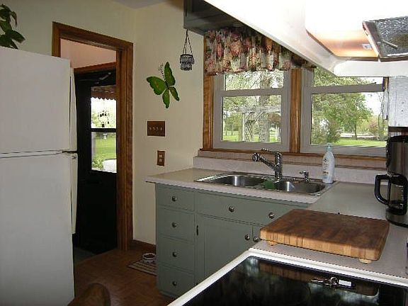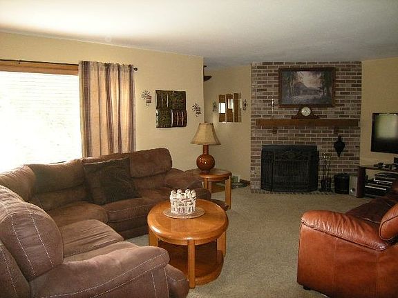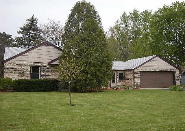 Spacious 2 bedroom. 13x24 living room with natural fireplace. Dinette area, heated breezeway. 4 car garage is a 2 car attached and a 2 car detached . Nearly 1 acre level lot. Updated interior, new windows, finished room in basement, work bench in garage and basement. Lannon stone exterior. 1 year home warranty included.