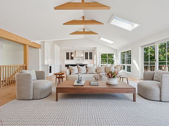 Newest project by Eminate Development | Situated on just under an acre in a serene private bay beach enclave, this bucolic retreat combines a charming, storybook cottage entry with the expansive elegance of a luxury beach house.As you follow the meandering drive, you're greeted by a classic cedar-shingled home with a cedar shake roof and copper gutters. Step inside to discover the sun drenched living space adorned with wide-plank 8" white oak floors, all overlooking picturesque grounds that lead to a dock and tranquil waterside views.The main living area features a gourmet chef's kitchen with Carrara marble countertops, handcrafted cabinetry by Bucks County Custom Cabinetry, Sub-Zero and Wolf appliances, wine and beverage refrigerators, Shaw sinks, a butler's pantry with laundry, and a masonry fireplace. An oversized Ipe deck extends from the living space, perfect for entertaining or enjoying the serene backdrop.The primary suite is a private sanctuary, with vaulted ceilings, fireplace, private deck access, custom walk-in closet, and a spa-inspired bath complete with a wet room style shower and tub, and a separate water closet. The main level also offers a junior suite, two additional en suite bedrooms (one with exterior access), a powder room, and a versatile lounge space.On the waterside level, walls of sliding glass doors open to the beautifully landscaped exteriors, with room for a permitted pool and spa. This level includes an oversized media room with wet bar, second laundry room, two additional bedrooms, and two full bathrooms - plus massive storage space ready to be customized to your needs.Enjoy the peaceful, sanctuary like setting by strolling the grounds, heading out for a paddleboard or boat ride, or relaxing on the roof deck while soaking in breathtaking sunsets.Additional dockage is available at the private marina, with access to a lifeguarded sandy beach and proximity to all of East Hampton's iconic waterfront dining destinations.Endless summer days await~