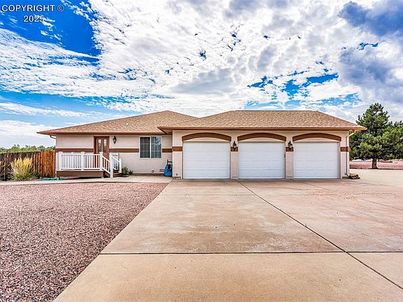Welcome to your dream retreat, a stunning ranch home that captivates with its expansive design and luxurious features, nestled on nearly 2 acres of picturesque land and backing up to serene open space. This architectural beauty boasts nearly 5,000 square feet of thoughtfully designed living space, with 6 generously sized bedrooms and 5 full baths, ensuring comfort and privacy for family and guests alike. As you approach the property, a beautifully landscaped concrete driveway elegantly guides you to the entrance, setting the tone for the grandeur that awaits. Step inside to discover a well-maintained haven, infused with pride of ownership and designed with family comfort in mind. The home's layout is a testament to thoughtful planning, featuring vaulted ceilings and exquisite rooms that flow seamlessly, perfect for both everyday living and entertaining. The expansive living room showcases a stunning wall of windows, offering breathtaking views and leading to an impressive deck that spans the length of the home—perfect for outdoor entertaining or simply soaking in the natural beauty that surrounds you. The formal dining room and parlor room are ideal for gatherings, while the beautiful kitchen, adorned with modern touches, is just perfect. The walkout basement offers additional living space and tons of storage. Throughout the home, 3 strategically placed gas fireplaces create warm and inviting atmospheres, one of them in the master bathroom next to a luxurious soaking tub. The oversized three-car garage provides ample room for vehicles and hobbies, catering to both practicality and leisure. The home is wheelchair accessible, featuring ramps for outdoor and indoor spaces, some of which are easily removable depending on need. In excellent condition and ready for its next owner, the seller is graciously offering a concession for carpeting, allowing you to add your personal touch to this already magnificent home. Location, Space and Luxury--this home is a rare find!!