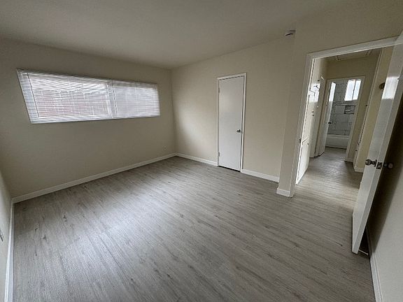 ADORABLE FREESTANDING REAR HOUSE!! This spacious rear unit in a four-plex has been completely remodeled with new laminate plank hardwood floors, a large eat-in kitchen with ceiling fan, new quartz kitchen counter tops, new stove and light fixtures and washer/dryer hook-ups. The bathroom offers a new bath tub, new vanity and all new fixtures. The big window in the living room faces the private yard that comes with this home. This unit comes with 1 parking spot in front of the house. ONLY SMALL PETS ALLOWED! AVAILABLE NOW!! Tenants are responsible for Gas and Electricity.