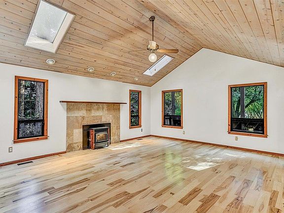 Contemporary Redwood Home nestled in popular Day Valley, this classic 4 bedroom, 3 bath home is move-in ready. The almost 2000 square feet of living space features 3 large bedrooms, two bathrooms, living room, and eat-in kitchen and dining on the main level. Upstairs is dedicated to the exclusive primary suite with balcony, walk-in closet, and beautifully updated bathroom. Gleaming hardwood and tile floors throughout, with other tasteful wood tones and features. This home is hardwired for high speed internet and home security system, ready for all your devices and modern lifestyle. Awesome newer trex-type deck in the front, with outdoor bar kitchen and sliding door to dining room. This property has large front and back yards, plus more usable land on 1.5 acres. Plenty of space for an ADU or guest house. Great parking and storage with a detached 2 car garage. This property is only minutes away from hiking, beaches, schools, and shopping. This fantastic house wont last long!