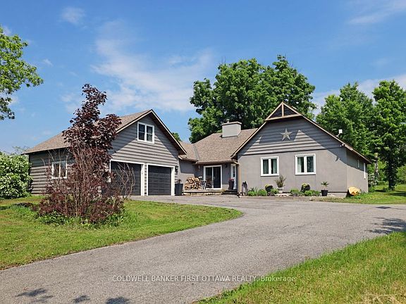 Welcome to this stunning 12.35 acre country estate, located within the city limits and only 10 minutes from Kanata's vibrant hi-tech hub. A pair of stately stone gate posts mark the entrance to the property and its charming 3+1 bedroom, 3 bath bungalow. Designed with both comfort and entertaining in mind, the home features a sun-filled south-facing eat-in kitchen with access to the deck and a warm, inviting living/dining area centered around a wood-burning fireplace. The spacious primary suite includes an ensuite, while two additional bedrooms, two bathrooms, a mudroom and laundry area complete the main floor. A separate entrance leads to the loft, offering a versatile retreat perfect for a home office, studio or creative getaway. The lower level provides exceptional space, including a fourth bedroom, wall to wall storage closets and a sprawling family room with enough room for a games area, workout space and movie nights! Equestrian enthusiasts will be delighted by the property's facilities: three fenced paddocks, a sand ring and a two-stall barn with tack room. Whether you are seeking a serene country lifestyle or horse lover's dream property, this estate truly has it all.