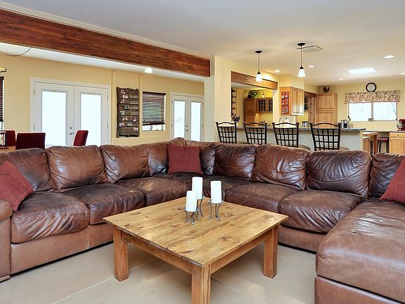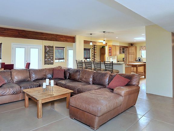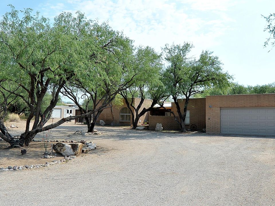 Tucked back from the road, 2 parcels for the price of one! Total of over 1 1/2 acres updated 4 bedroom home with polished concrete floors in main areas. Master retreat has gas fireplace, walk in closet, separate tub and shower, double vanities. Great room concept with bright open kitchen. Granite counters, breakfast bar, gas range, the center of the home perfect for entertaining. Off the kitchen is pool table/media room with burnt adobe wood burning fireplace. Guest room with full bath is private from the other wing. Office with double doors off great room can be closed for schoolwork . 2 car garage on the house, 1 car workshop separate on property. Huge covered patio, firepit, and bar area in backyard that has several mesquite trees and privacy. 2 HVAC units, 2 water heaters. Act quick!