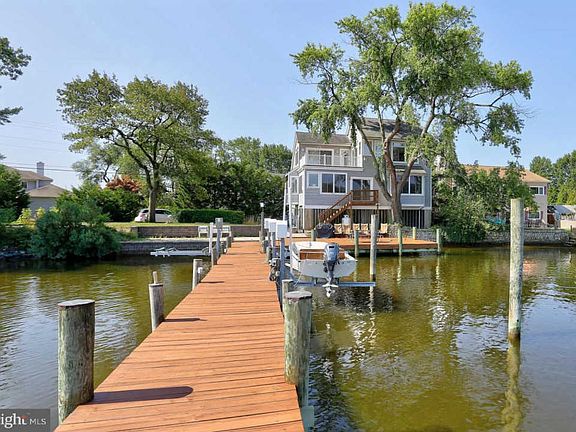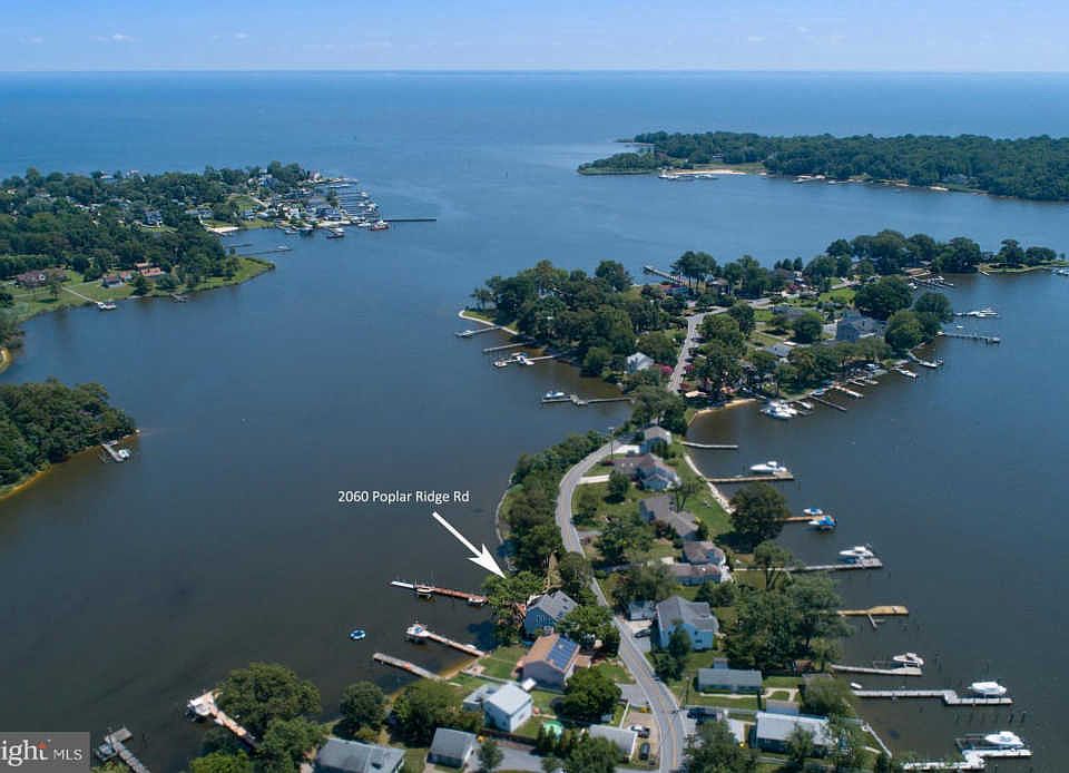 Exquisite waterfront setting near the end of Poplar Ridge peninsula with panoramic views all the way out to the Bay. Coastal style 3 level home built 2001 with open space concept and walls of windows to maximize the views. Main level has open greatroom encompassing living and dining areas, plus kitchen and breakfast bar. Corner gas fireplace. Granite counter & maple cabinets, Ceramic tiled floors in greatroom and baths: hardwood flooring in remainder of home. Sliders from greatroom lead to upper level waterfront deck with steps down to generously sized deck at water's edge. Upper level has one of two owners' suites with spectacular, expansive views looking east out of the mouth of the Bodkin to the Chesapeake Bay. This upper level owner's suite has an ensuite full bath, corner gas fireplace, and sliders to upper level waterfront deck. Second upper level bedroom also opens onto waterfront deck and has wonderful views. A third room on the upper level would serve well as an office or den. Main level has second owners' or guest bedroom with the same fantastic view of the Bodkin and the Bay, ensuite full bath. There is a second main level bedroom and hall full bath. Total of 4 Bedrooms and 4 Full Baths. Entry level has 2 single bay garages, large boat gear storage area, and steps up to main living area. Massive waterfront deck and paver patio are perfect for entertaining. Deep water pier with quick access to the Bay has 2 boat lifts and 2 pwc lifts. Floating pier also conveys. Property is a total of .36 acres and appx 650' + of shoreline which includes additional parcel to right of house with extensive living shoreline. Geo thermal HVAC. A truly one of a kind waterfront setting.
