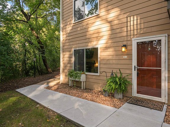 Darling and updated 2-story, end unit condo with private outside entrance! Tucked off the beaten path but within steps of SLP's desirable West End, Sunset Ridge offers you wooded, wetland serenity with the conveniences of nearby shops, dining and easy freeway access. This home has been thoughtfully renovated with an eye for detail. The main level features an open-concept kitchen with new cabinetry, quartz counters, stainless appliances, and open shelving. A spacious dining area highlights a statement feature wall, while the living room offers a cozy wood-burning fireplace, built-ins, and access to a charming screened porch. The custom mudroom with built-in storage adds both function and style, and a main-level half bath is perfect for guests. Upstairs, a spiral staircase leads to two generous bedrooms. The primary easily accommodates a king-sized bed and includes a large closet, while the second bedroom offers additional built-ins and a private balcony. New flooring, custom millwork, and thoughtful finishes throughout create a turnkey home that blends comfort and modern design in every detail.