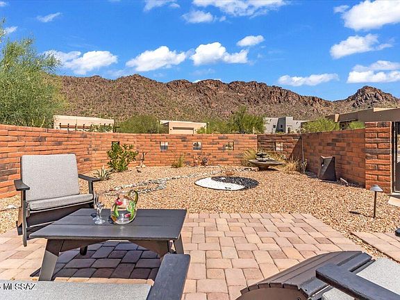 Newer Herder home where luxury and comfort blend. A cozy courtyard welcomes you with a soothing fountain, a peaceful sitting area, and breathtaking mountain views. Inside, the heart of the home is a dream kitchen, featuring beautiful Knotty Alderwood soft-close cabinets, a five-burner gas range, and a suite of sleek stainless steel appliances. The spacious living room is anchored by a cozy gas fireplace, perfect for relaxing. The primary bedroom offers ample space and more incredible views. This home is designed for year-round comfort with a whole-house humidifier hard-wired to the thermostat. the oversized garage, extended by four feet, equipped with Utility sink. This is a gated community with Pool, Spa, Tennis Courts, Pickleball, and more.