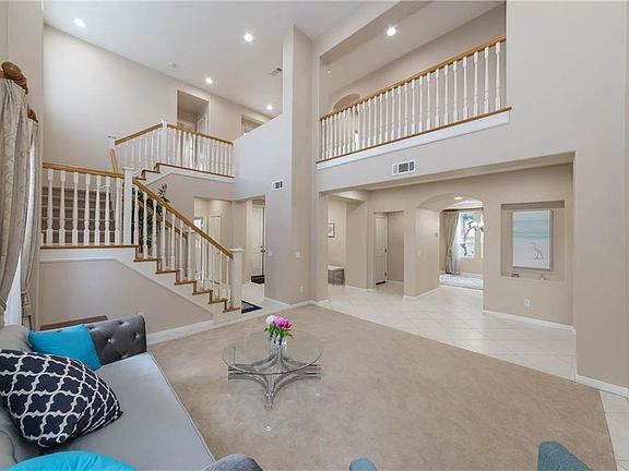 Beautiful home in the gated Westridge golf course community. Features 5 bedrooms, 4 baths, 2-car attached garage, and good size back yard with fountain & pond. Just finished outside paint. One bedroom downstairs with large closet, and laminated wood floor.(Closet converted from 3rd garage). Living room with high ceiling, high windows for natural light, carpet, and recessed lights. Large formal dining room. Spacious kitchen with kitchen island with seating, granite counter top, walk-in pantry, recessed lights, and tile floor. Family room with a cozy fire place, media niche, ceiling fan, and recessed lights. Large Master suite with tray ceiling and recessed lights and ceiling fan. Master bathroom with his and hers sink, separate soak tub and walk-in shower, his and hers walk-in closet, and tile floor. Convenient upstairs laundry room with a sink and overhead storage cabinets. 3 other good size bedrooms with ceiling fan. Carpet flooring in all bedrooms, stairs and upstairs hallway. Large and beautiful back yard with a rock fountain and planters. Great location close to golf course, shopping, dining, bank, and post office. Landlord pays gardening, Tenant pays pond maintenance. Tenant must obtain renter's insurance. No smoking.
