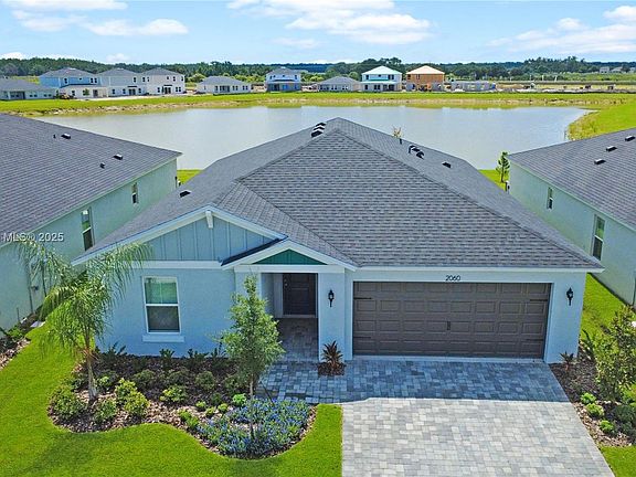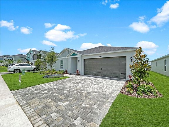 PRICE REDUCED! Welcome to this beautiful brand new 3 bedroom, 2 bathroom lakefront home in the new "Two Rivers" community in Zephyrhills. This one-story residence features a modern open floor plan with high vaulted ceilings, luxury vinyl plank flooring, and a stunning kitchen with quartz countertops, stainless steel appliances, and 42" shaker cabinets. The spacious primary suite overlooks the lake and includes a walk-in closet and a double-sink vanity. Enjoy peaceful water views from your covered lanai and backyard. Includes a full-size laundry room with full size washer & dryer. Located minutes from shopping, dining, parks, trails, and top-rated schools. Don't miss the chance to live in a growing community that will offer beautiful amenities and tons of natural surroundings!