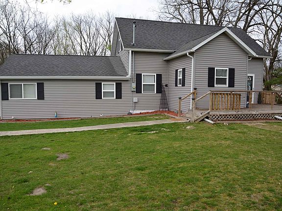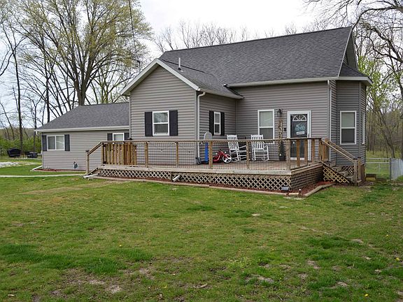 Country living on Macomb's doorstep. This updated home sits on over 3 acres just past the city limits and was unfinished when purchased by these owners in 2021 -- they subsequently completed a long list of improvements. (Contact listing agent for the details.) The home features city water, vinyl-plank flooring, a newer furnace and water heater, and a fenced yard. The wooded back yard gently slopes back to a happy little creek and a rustic bridge ready for Tom and Huck-inspired adventures. Also included: a storage shed, large basketball court, and wraparound front deck. There's even some fun local history: This home previously was known as the Brickyard School in the late 1800s. Built sometime between 1863 and 1871, it was originally located near Robin Road -- where it was referred to as "Hard Scrabble" -- and was moved to 2060 W. Adams sometime between 1871 and 1893.
