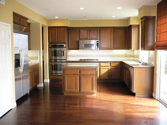 Beautiful end of cul-de-sac 24-Hour Guard Gated Sorrento in Prestigious Porter Ranch w/amazing city views! Upgraded to perfection incl: beautiful espresso hardwood floors, grand foyer entry, soaring ceilings, elegant living room & formal dine, granite center isle kitchen, stainless steel appliances & built-in Frig, family room w/fireplace + media niche * 1 bed/bath down * master suite w/view, master bath travertine floors and spa tub * bonus room * side courtyard w/fountain & spa * rear w/BBQ Center, fire pit, grass + awesome views! Also community Pool/Spa and Playground. Close to all shopping, parks and Porter Ranch K-8 School which has Great API's.