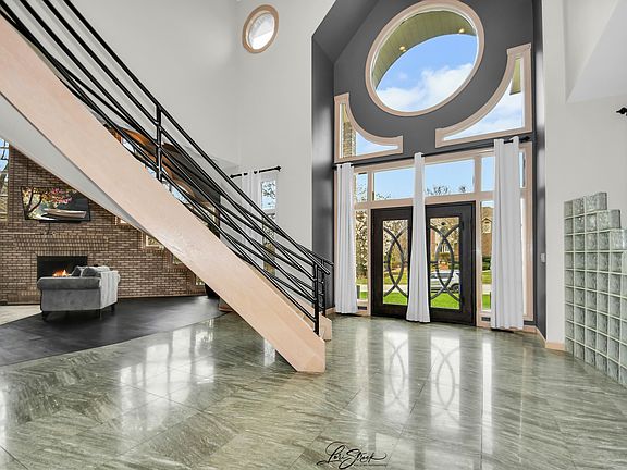 Take a look at this beautiful 7000 square feet of absolute luxury...situated in exclusive Abbey Woods Subdivision! You will enter this emmaculant 3 story home through its massive archway, flanked by copper doors and walk into the jaw dropping marble foyer; which is the venue to take in all the beauty and light of this amazing architectural design! Dramatic room features include beautiful curved and circular staircases, an amazing catwalk and soaring ceilings! There are 2 massive floor to ceiling wood-burning face-brick fireplaces offering warm center piece to the upper living room and the lower open recreational area. The enormous two story deck is the stage for an awesome view of Mother Nature which flanks the back yard grounds! This enormous deck can hosts large family gatherings or serve for cozy romantic evenings. The yard boasts beautiful tree-scape, a lovely light creek which is bridged to cross over to a sizable log cabin structure (a perfect man cave or she-shed). The owner has thoughtfully cleared an area of the backyard to easily accommodate your creative choices with the space. Even more...there is also a decorative pond just waiting for the addition of Koi fish and a large brick barbecue and fire pit for your relaxing enjoyment. The kitchen features double ranges, 2 dishwashers, granite counter tops, in island prep sink, and contemporary cabinetry. The master bedroom gives the feeling of being in a 5-star suite...featuring shaded skylights, covered private balcony and a master bathroom that will leave you breathless with its enormous walk-in shower, extra large center spa tub and there is a bidet). The huge master walk-in closet features lots of custom thoughtful cabinetry; The study is suitable for business, learning or it s library ready featuring sleek built in desk and shelving. (This room is an easy conversion to a 5th 1st floor bedroom). The lower level, which walks out to the beautiful grounds, is open and features separate family room and recreational areas which include an amazing bar with refrigerator, sink and keg dispensers. This is a must see...must have property! Incredibly priced for Abbey Woods! (All furnishings in property are all new and available for sale!). Schedule your showing today!