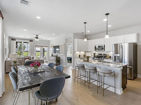 This 3-bedroom, 2.5-bathroom Abbey floor plan makes most of its square footage, allowing you to design the home you've always wanted. The main level features a spacious living room which flows directly onto the covered patio — perfect for entertaining guests or simply enjoying a meal outdoors. The second level is where the primary bedroom can be found, equipped with a luxurious ensuite and walk-in closet. You'll also find a washer and dryer on this level, making laundry easily accessible. The Abbey Carport model features a 1-car garage and 1-car carport