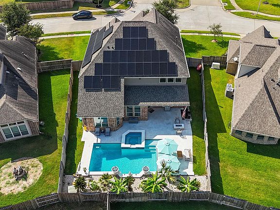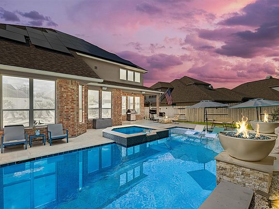 Experience modern living at its finest in this stunning 4 BDRM, 3.5BA home. Soaring ceilings, sleek finishes, & abundant natural light fill this elegant living space! Elevate your culinary creations in the gourmet chef's kitchen featuring granite counters, large island w/ breakfast bar, dual ovens, & gas cooktop. The primary suite is a serene retreat, offering tray ceilings, large windows, & a spa-like bath w/ soaking tub, walk-in shower, & dual vanities. Upstairs, a spacious game room & versatile bdrms offer comfort & flexibility. Take refuge in the expansive resort style backyard boasting a 1,000 sq. ft. travertine deck, saltwater pool & spa, breathtaking fire features, & lush tropical landscaping; creating the perfect place to unwind! Thoughtful upgrades—include solar panels, engineered wood floors, water treatment systems, EV charger, & Vivint security. Enjoy the welcoming Laurel Park community complete w/ community pool, serene hike & bike trails, & wonderful community events!
