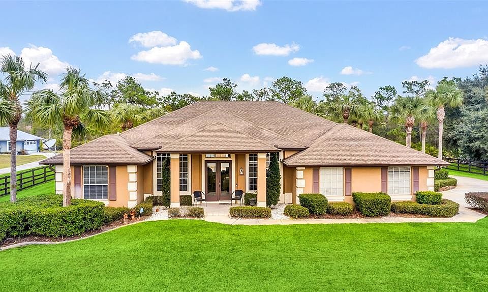 Back On Market due to buyer's financing falling through. NEW ROOF 04/2023!! This stunning Builder's Main Home and Additional Home sits on a beautifully manicured 1 acre (high and dry)!!! This property has what you've been looking for! The main home features an amazing floorplan with 2630 sq ft, 4/4 plus an office, high ceilings, a daughter-in-law suite, a large laundry room, and an open kitchen with a walk-in pantry! Spacious isn't even the word! All of the bedrooms are oversized, even the Master Closet (measuring 14' x 8.5')!! The 8' sliders open to the pool and cabana area that includes a FULL kitchen, equipped with range, refrigerator, and another FULL bath! On the other side of the privacy wall sits the second home. With approx. 1250 sq ft, this 3/2 is sure to impress your guests, your in-laws, or your future renters! Built in 2020, this home features floor-to-ceiling tile in the bathrooms and a large master closet with a California closet! Both homes have gutters, mature landscaping (over 30 beautiful palm trees) hardscaping, and a water system! St Augustine grass covers the entire acre, which is fully fenced with an automatic gate! A large carport is perfect for your boat or RV storage and has electricity! The smaller carport can fit a small boat or your golf carts, side-by-sides, or toys! Wedgefield is a golf and Equestrian community. It has an A-rated school that serves preschool through 8th grade, a community park with a baseball diamond, volleyball, and basketball courts, a covered playground, a dog park, workout area, reserves, and sidewalks throughout! Watch the rocket launches from your backyard, enjoy your privacy but still be within 40 minutes to beaches, theme parks, and all of the wonderful things Central FL has to offer! 1% LENDER CREDIT OF LOAN AMOUNT IF USING PREFERRED LENDER!!