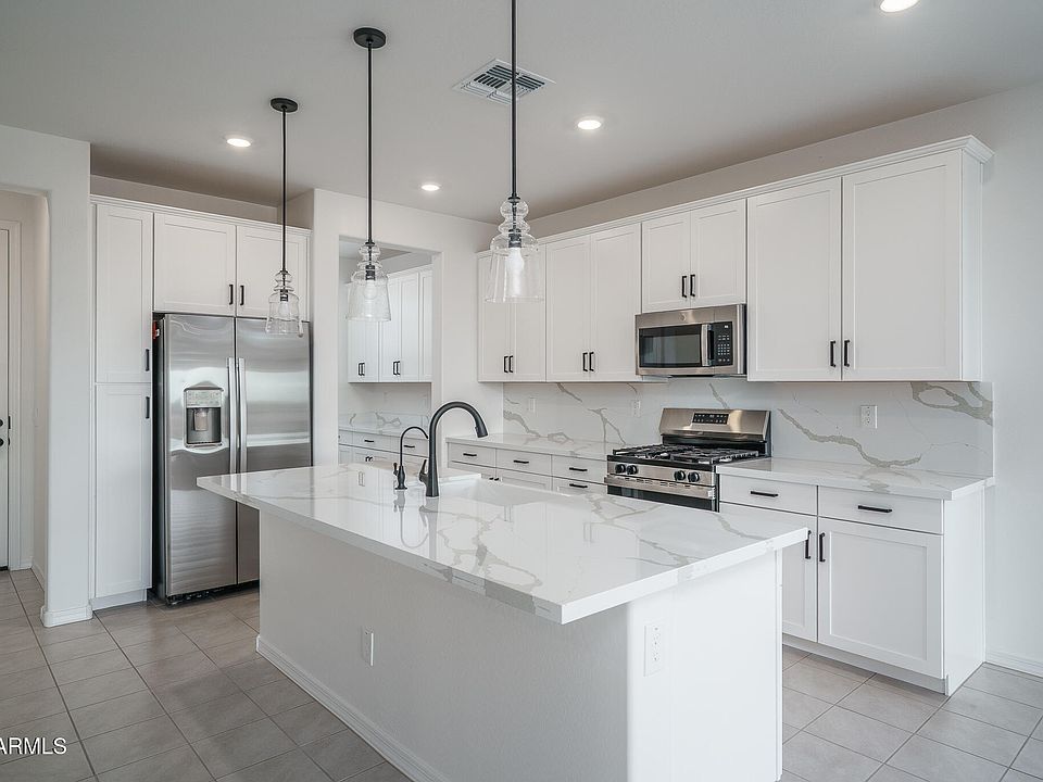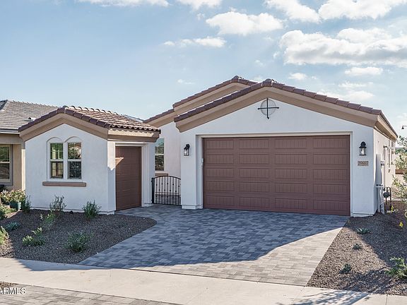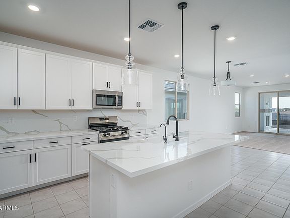 Brand-new home in Victory Verrado's amenity-rich, age-restricted community! The sunset from the back patio is unbeatable! Enjoy a split 3-car garage with 4 foot extension and charming gated front patio. Inside, the stunning kitchen features quartz counters, stainless steel appliances, and a breakfast bar. Plus shutters will be installed throughout! The primary suite offers a tiled shower, dual sinks, and a huge walk-in closet. Relax on the covered patio with a fireplace. Plus, a new water softener has been installed and a sparkling pool is scheduled for completion by spring 2026! Landlord will maintain the pool as well! Come see this home today!