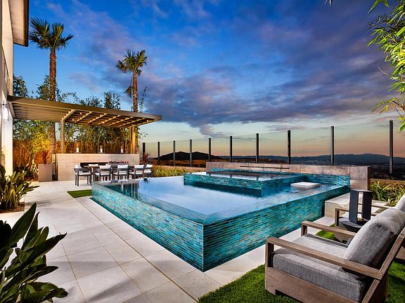 The Caldera welcomes you home with a spectacular covered entry and two-story foyer that immediately flows into the beautiful two-story great room and luxury outdoor living space beyond. The great room, well-appointed kitchen, and roomy casual dining area overlooks the outdoor space, perfect for year-round entertaining. The kitchen is complete with a large center island with breakfast bar, plenty of counter and cabinet space, and sizable walk-in pantry. Just off the kitchen is a private, secluded flex space. Upstairs, the magnificent primary bedroom suite features a spacious walk-in closet and alluring primary bath with dual vanities, large soaking tub, luxe shower with seat, and private water closet. Central to a generous loft, the secondary bedrooms feature ample closets, two with private baths, one with shared hall bath. This home also includes a versatile first-floor bedroom with closet and private bath off the foyer, convenient powder room, and centrally located laundry.