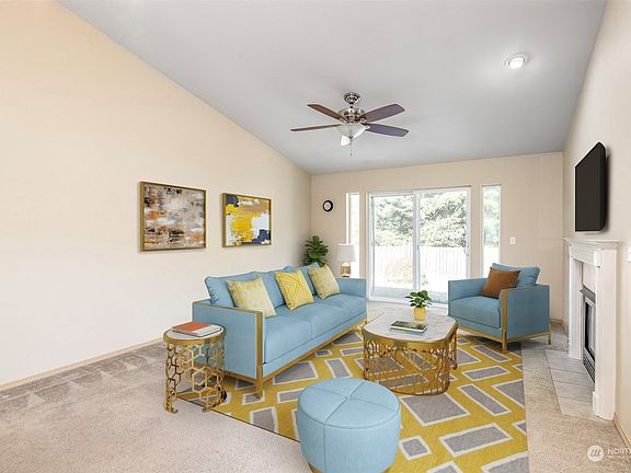 Welcome to the Buttes! This well maintained 3 bedroom 2 bath rambler is perched on a beautiful, fully fenced, greenbelt lot. As you enter into the home you will find a spacious kitchen that opens right to a family room w/ a gas fireplace. The vaulted ceilings give this home a great open feel to it. The spacious primary suite comes w/ a large walk in closet & full bath! Additionally, you will find two good sized guest bedrooms & an additional full bath. The back yard has a large patio to allow for hosting & BBQ's in the Summer! Lots of driveway parking with a large 2 car garage attached. 2-year old roof & exterior paint. The gated community allows for a safe place to come home to. Close drive to downtown Orting for grocery & local food.