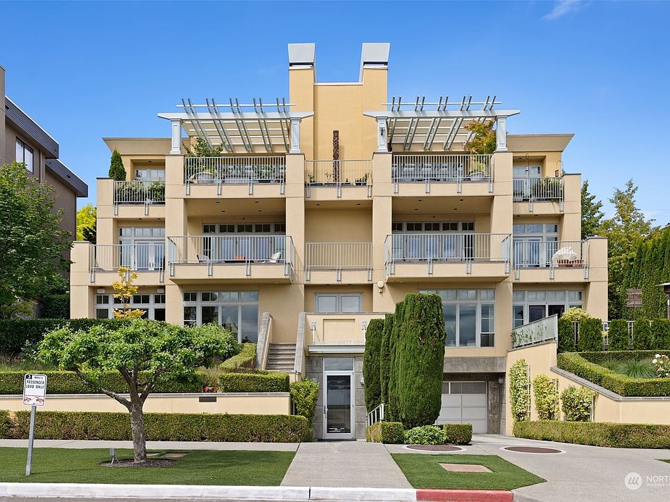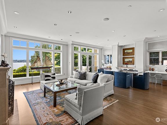 Exceptional one level living in a boutique building, in the highly coveted Madison Park community. Spacious layout featuring the finest craftsmanship with high ceilings, custom built-ins, gas fireplace and storage galore. 2 large bedrooms, cozy library & dining room, this unit lives more like a single family home. New paint throughout, refinished hardwoods & window treatments. The piece de resistance is the large, intimate front patio overlooking Lake Washington, surrounded by verdant plantings. Bedrooms access a back patio, providing lovely afternoon sun and privacy. 2 garage parking spots, Tesla charger & additional storage in garage. An easy stroll to Madison Park shops & restaurants, this is lock and leave luxury at it’s finest.