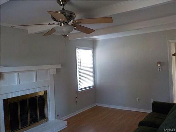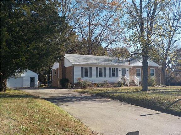 Updated brick ranch in North Chesterfield. 3 bedrooms, 2 full baths, and garage with workshop. Beautiful hardwood floors in most rooms. Kitchen has white cabinets, appliances including French door refrigerator, solid surface counter tops, double sink, tile floor and backsplash, and chair rail. Kitchen is open to the informal Dining Room which has a hardwood floor. Inviting Family Room/Den with brick fireplace, crown molding, and ceiling fan with light. Florida Room with wood laminate floor is heated and cooled for year round enjoyment. Spacious Living Room with lots of natural sun light. First floor master bedroom with updated private bath that includes a tile shower. Hall bath updated also and has a tiled tub/shower. Lots of closet space throughout. BRAND NEW HEAT PUMP. Replacement windows. Detached 20 ft x 24 ft car and a half garage with workshop, plus a pole shed attached rear of garage. Paved driveway. Large corner lot with mature trees in beautiful neighborhood.