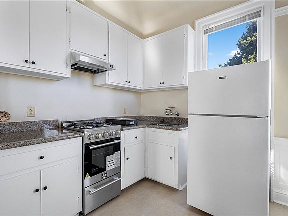 Tree-lined streetGenerous shared backyardLarge windowsPlenty of cabinet spaceRefrigerator and gas stove