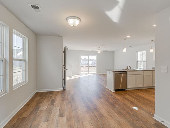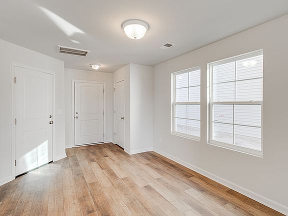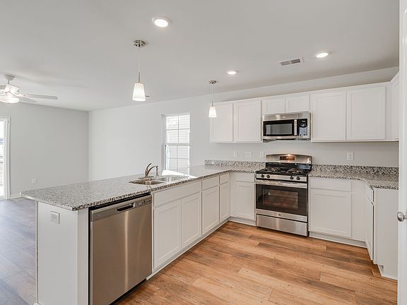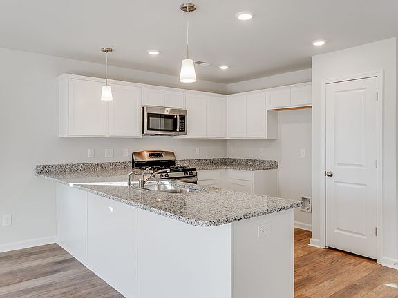 The Bartow is a two-story home with a brick accent that comes with three bedrooms and two-and-one-half bathrooms. Just off the entryway, an eating area leads into the kitchen and great room. Enjoy a lovely kitchen with granite countertops, stainless appliances, and gas range, beautiful cabinets with crown molding and pendant lighting just over the countertop, a perfect touch of lighting while you enjoy a movie, in this open floorplan to the great room. Through the great room, which leads to the outback, you'll enjoy a generously sized extended patio space and a storage shed. Upstairs, near the bedrooms, the laundry room is conveniently located which has cabinets plus additional storage with two linen closets in the hallway. The spacious primary bedroom connects to a walk-in closet and a primary bathroom featuring a five-foot shower with a quartz countertop and double sinks. There are two more bedrooms on this floor, near the second full bathroom. Come see the Bartow plan today in Bluefield!