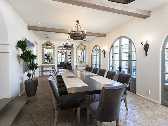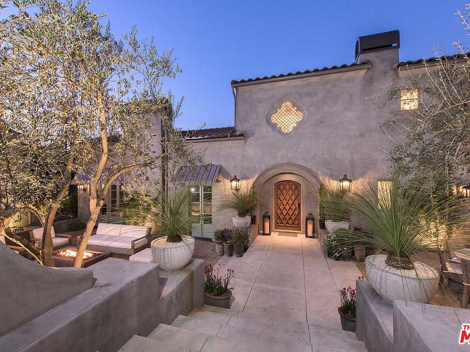 Behind the gates of exclusive Laughlin Park, this recently-reimagined Spanish home, showcasing elegantly bespoke design by Xorin Balbes of TempleHome, blends the best of the Old and the New World. Entry courtyard with firepit leads to privately gated 5-bdrm estate. Grand living room with massive fireplace and the home's original wood beam ceiling raised to soaring heights sets the dramatic tone. On one wing is the chef's kitchen, grand formal dining room, spacious family room and a more intimate dining room. On the other, an office and a luxurious master suite. Upstairs is 2nd sumptuous master suite and 2 luxe guest suites. Add'l amenities incl an abundance of natural light, theater, gym, sauna, additional 5th bdrm suite, pool house, wine wall, 3-car garage, the latest technology in sound/lighting/automation, views of the Observatory, and a generous indoor lounge with fireplace leading to outdoor dining, a spectacular pool, sunning and lounging areas, and romantic and mature gardens.