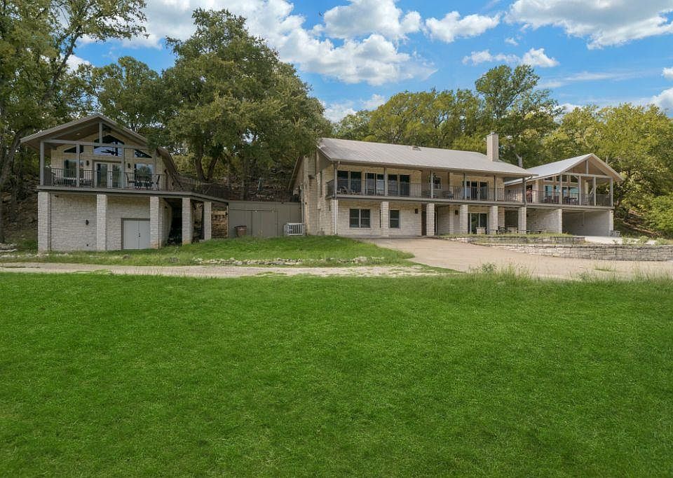 Enjoy Life on the Guadalupe! 5.2 acres with over 400'of river frontage w/ private dock on Cullum Lake. Superbly remodeled home takes advantage of river views and abundant natural light. Use as full-time residence, retreat, or investment property. Open concept island kitchen w/ SS appliances, dining easily accommodates 8 or more & living room w/fireplace & sliding doors to balcony. Upper level Owner's suite features fireplace, river view, balcony access, dual vanities, walk-in soaking tub & lg shower, plus an office alcove. Lower level is perfect for family or guests w/ 2 spacious suites with river views - one has patio access, coffee bar w/ sink & fridge & ensuite w/ tub/shower combo. The other suite features custom built bunks w/ storage, nooks & lighting and large area for additional sleeping or use as sitting/TV area, and ensuite bathroom featuring dbl vanity & shower. Flanking the main house & accessible via the fabulous balcony perfect for relaxing with a spectacular view of the river are 2 large, private guest suites w/coffee bars & ensuite baths. Terraced yard w/ fire pit and fantastic dock to enjoy. 2 car carport, and tons of enclosed storage. Don't miss this opportunity!