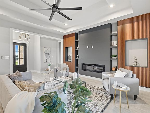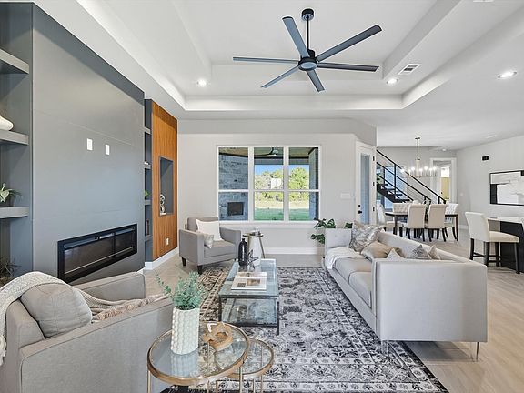 This stunning home offers 5 spacious bedrooms, a dedicated office, and an upstairs game room. The open floor plan features a living area with fireplace, seamlessly connected to a chef’s kitchen with custom ceiling-height cabinetry, premium appliances, and a dining space filled with natural light.