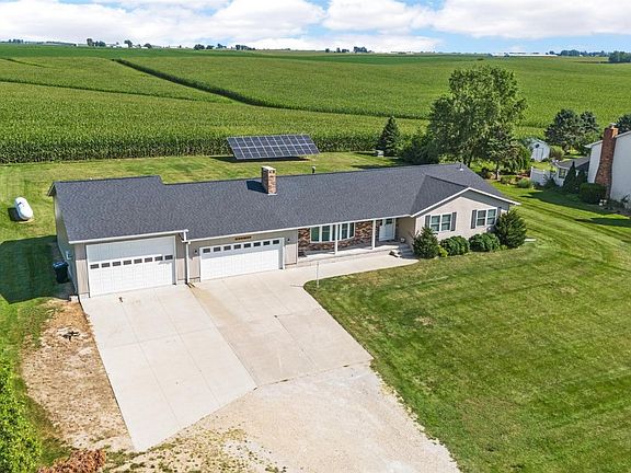 This sprawling property that seamlessly blends rustic appeal with modern comforts. This home features over over 3,700 square feet on a nearly 1 acre lot offering serene country living. The main floor offers over 2,200 square feet of living space. With an open concept kitchen has a large island and plenty of countertop and cabinet space. The kitchen flows to a dining area and family room. The 3 large bedrooms and 2 full bathrooms and main floor laundry complete the main floor. The finished lower level has tons of potential. The large rec room has a second kitchen, full wet bar and plenty of storage space! The 4 car attached garage is insulated, heated and cooled with nearly 1400 square feet of space. Perfect for all of your toys and tools! A great bonus is the solar panels providing a major cost savings with no electric bill! Other recent updates include, new roof, windows and doors! Call for your showing today!
