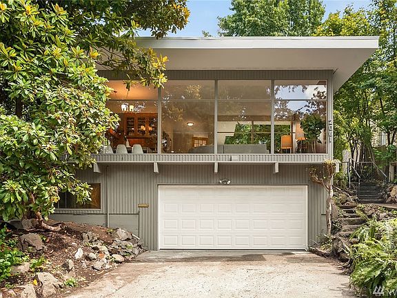 Super cool Mid-Century home tucked away on a quiet street overlooking Interlaken Park. Designed by Roderick Glenn Parr in 1957, the compelling original design remains relevant today with classic sloped roofline, walls of windows and an open floor plan. Sited on a uniquely private and large corner lot in a prime north Capitol Hill location, this property has endless potential! Highly desirable one level living with a south facing courtyard- the perfect spot to entertain. 2 car garage. Must see!