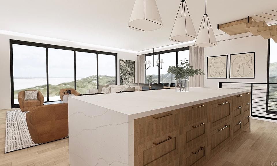Build your ocean view luxury home in Cardiff without the lengthy planning and approval process! Located West of the 5 in the sought-after Walking District, this modern coastal build opportunity combines a prime coastal location with the unmatched luxury of new construction. With nearly three years of design and planning already invested for you, your brand new custom luxury home dream awaits. The exquisite 3600 sq ft home design showcases 4 bedrooms, 4 1/2 bathrooms which intelligently utilizes the west facing orientation and maximizes use of the lot. The basement features a two car garage, full bed, bath, lounge space w/wet bar, wine cave, and a mudroom outfitted with a dog washing station. The main level unfurls into an expansive, open-concept living space with floor-to-ceiling 2 story southern facing windows, a dining room, sunroom, and an inviting great room that opens up via sliding doors to the covered patio for ultimate indoor/outdoor living. A modern, floating stairway ascends to the second level, revealing the primary suite and two inviting secondary bedrooms. The primary suite, adorned with an ocean-view covered patio, promises tranquil beginnings and endings to your days with views of the Pacific Ocean. To take full advantage of the coveted bluff top location, the full length rooftop deck offers endless views from eastern sunrises to grand Pacific sunsets. Every facet has been integrated into this impeccable design, inclusive of professional top-tier interior design selections. The attention to detail is paramount, from the handpicked interior choices to the harmonious landscaping. The rear yard generously offers a 480 sq ft covered patio, paired with an outdoor shower and a cozy fire pit. This property transcends being merely a home; it's an artistic canvas. A beacon of sophisticated coastal luxury, it stands ready for your personal touch in one of San Diego's most iconic beach towns.
