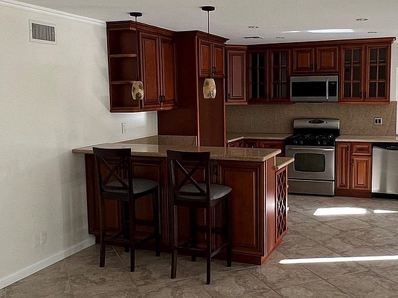 Beautiful 3 bedrooms and 2 bathrooms home located in nice neighborhood, close distance to elementary school and shopping area, at the same time in quite area with very little traffic. Open floor plan, large kitchen with two level bar counter and granite counters, large dining area connected to kitchen, fireplace, formal living room. Large master bedroom with walk-in closet. LED lighting throughout. New laminate flooring in all three bedrooms and freshly remodeled/painted. Tile floor throughout kitchen and dining area and real wood floor in living room. New roof and new water heater. Large two car garage with attic storage space. Property does not come with refrigerator and washer & dryer. Washer and dryer hookups available. Back yard has swimming pool with working equipment. Tennent to maintain pool cleaning service. Small pet is acceptable. Tenant responsible for all utilities including water, electric, sewer and maintain swimming pool. no smoking allowed, small pets are ok.