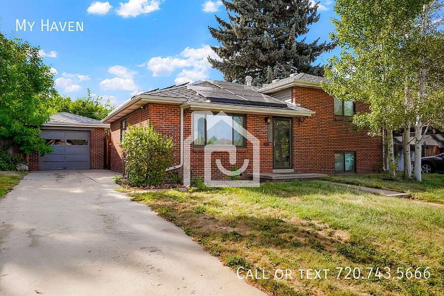 Welcome to 2061 S Wolff Street. This 3-bedroom, 2-bath home features a well-used 1,353 square feet. The main floor features a fully upgraded kitchen with a gas stove and stainless appliances, and hardwood floors are featured throughout. The upstairs has two identical bedrooms and a shared bathroom with tons of natural light and no carpet! The lower level is dedicated to the oversized primary suite which includes space for an office, a large walk in closet with custom shelving, and a primary bathroom with two sinks. Your home is complete with a detached, one car garage, large backyard with planter beds, and solar panels to help you save $$ on your monthly electricity bills.