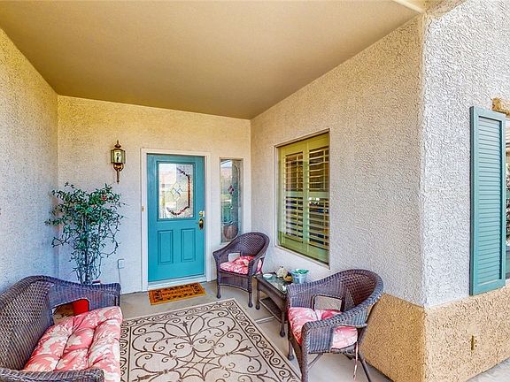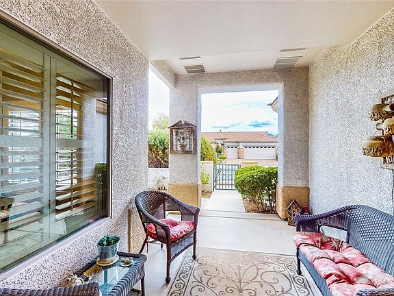 Move-in Ready for this lovely Huntley model layout! Solar is paid off - very low energy bill! Freshly Painted throughout the interior! Separate Kitchen Eating Area, Updated Kitchen Cabinets with Pull Out Shelves, Granite Countertops! Includes All Appliances, Reverse Osmosis Filter System at Kitchen Sink, Double Ovens and Electric Cooktop. Laundry Area, Water Conditioner, Garage Storage Cabinets. Guest Bedroom has Direct Access to Guest/Hall Bath. No Carpet, Ceramic and Laminate Flooring and Beautiful Plantation Shutters Throughout. Open Living Area with Custom Built-In Entertainment Center. Just the right size Den/Office off of Living Area. Backyard has a Retractable Awning with Safety Stop, Fruit Trees and Covered Patio with Ceiling Fan. Lovely Front Courtyard with a Great View of the Mountains. Pride of Ownership! Don't forget to tour the Clubhouse and all that it offers! Close to shopping, casino, airport and 215 freeway.