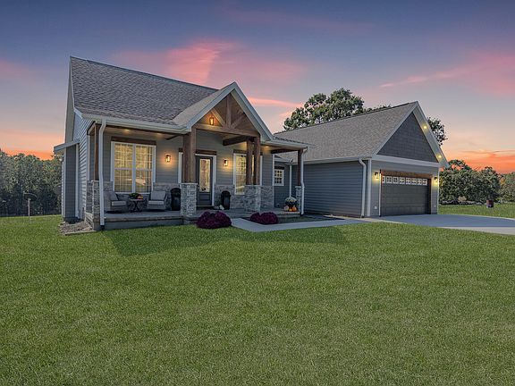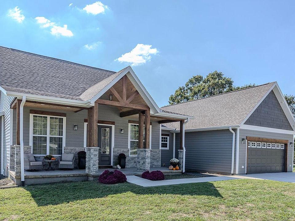 Gorgeous Home with Country Charm & Luxury finishes sitting on 9ac just outside of Marshfield! Built in 2024, this Custom Built Home at Exit 107 features over 1,800 sq. ft. of quality living space with modern finishes, 3 bedrooms, 2 full baths and 1 half bath, a highly sought after split floor plan, LP sided exterior (Color: SW Chelsea Gray), an architectural roof that offers a 50-yr Warranty (GAF TIMBERLINE HDZ in WEATHERWOOD), a nice 2-car garage, a 24x24 shop with concrete floor/overhead door and pond! A custom gated entrance with Ghost Control System and a fresh gravel drive leads you HOME... The exterior of the home and beautiful setting will absolutely have you from hello! The front patio is graced with oversized, Douglas Fir beams, beautiful stone, a tall vaulted ceiling with car siding, stamped concrete and recessed lighting. You'll always have a wonderful breeze sweep across this porch. Upon entry you're welcomed by a neutral color palette & clean lines, stunning mid-tone Luxury LVP flooring, a wonderful living area with 10' ceilings & propane fireplace insert w/mantle and tile surround, tons of recessed electrical and an abundance of natural lighting thru these big windows! The kitchen/dining area features beautiful custom cabinetry with crown moulding & silver hardware (designed and installed via Chucks Custom Woodworks), granite countertops, undermount stainless sink, 8' island with storage and stainless/black Whirlpool appliances. Refrigerator will stay! The back deck is constructed with TREX and will be your most favorite place to sip your morning coffee or catch gorgeous sunsets! There's plenty of deer that come to visit, too. Down the hall you will find the half bath, attic fan and an amazing pantry with granite counter top and plenty of shelving. The Master is nicely sized, offering a wonderful view of the back acreage, a full bath with his and her sinks, custom cabinetry with marble top, oversized custom tile shower and an amazing walk-in closet