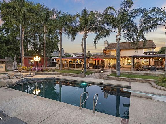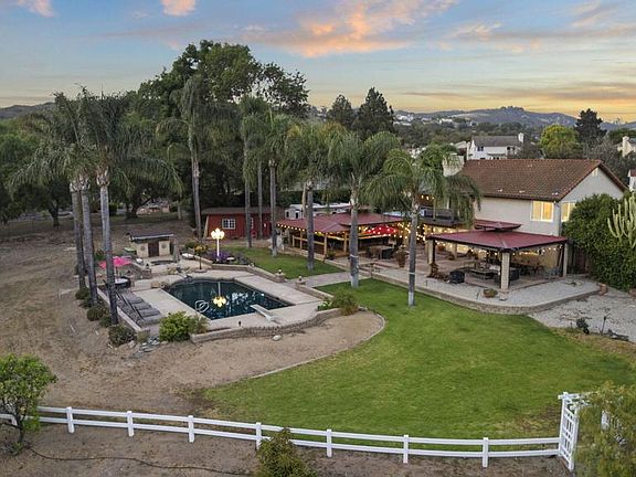 California resort style living on over an acre offers luxury, comfort, and paradise for everyone. This beautifully upgraded 4-bedroom, 3-bathroom home has 3,051 square feet of living space, blending high-end finishes with a thoughtful layout designed for both everyday living and impressive entertaining. The heart of the home is the gourmet kitchen, featuring rich soapstone countertops, a marble backsplash, white dovetail Kraftmaid cabinetry, and a full suite of Thermador appliances including a 48-inch range with double ovens and griddle, a counter-depth refrigerator, hood, and built-in dishwasher. A pot filler above the range, wine fridge, custom wine rack, and an expansive island complete the space, making it a true culinary dream. Upstairs, the spacious primary suite feels like a private retreat with vaulted ceilings and a balcony overlooking the lush backyard. The luxurious en suite bathroom features a large quartzite-tiled shower with dual shower heads and a rain shower, a deep soaking tub with a tranquil view, dual sinks with Carrara marble counters, and a walk-in closet. Open loft is the perfect office or escape space. Downstairs, a versatile office or guest bedroom includes a custom Murphy bed and built-in shelving, perfectly suited for flexible living. The property's outdoor space is a true showstopper. A resort-style pool and spa with a PebbleTec finish create a serene setting for relaxation. The expansive covered lanai and incredible outdoor kitchen feature a large bar island, a built-in 39-inch BBQ, an offset smoker, dual refrigerators, two 55-inch TVs, and a Thermador stovetop--ideal for gatherings large or small. Multiple garden areas and an enclosed garden with drip irrigation add beauty and function to the outdoor space. Room for a pickleball court and more. Additional features include a large automatic gate with keypad entry, providing access to parking for multiple cars, RVs, boats, or other recreational vehicles. There's a powered RV pad, a converted shipping container workshop windows, and electricity, a workshop area with barn doors and built-in benches, and a 120-square-foot Tuff Shed barn at the base of the property. Inside, you'll also find a dedicated laundry room and a mudroom conveniently located off the garage. Thoughtfully designed and meticulously maintained, this home is a rare opportunity to own a private estate with unmatched amenities and a lifestyle of comfort and ease.