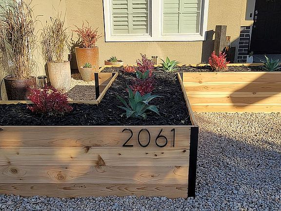 Spacious updated 4 bedroom home with custom paint throughout. Kitchen has granite counters, large island with barnwood accent, new stove/microwave unit, breakfast nook banquet with coffee bar, and large pantry. Family room has barnwood feature nook next to gas fireplace with custom mantel and stacked stone facade. Large living room and dining room with updated lighting. Guest bathroom has quartz counter and new faucets. Primary bath has double sinks, separate water closet, soaking tub and shower and a large walk-in closet. Also has access to back patio. Hallway has built-in office area. Plantation shutters and ceiling fans throughout. Back yard has hot tub with deck and solar umbrella, firepit with bench seating, party lights on covered patio, 30 ft fenced dog run that could double as garden area, sprinkler system, mature plants. Front yard has new easy-care native plants in custom planter boxes with potted plants, solar lights and fountain. Home was recently painted, and all fences are new within a year. 3 car garage with storage shelves and Water softener. Quiet neighborhood within 1 block of 2 parks.