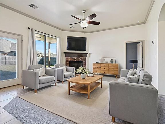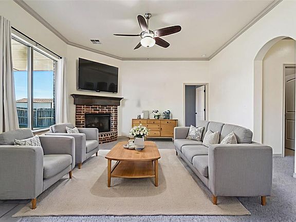 Feast your eyes on this BEAUTIFULLY MAINTAINED 3-bedroom, 2 bath home in the fabulous Fall Creek Addition! – A safe, quiet, family friendly neighborhood, close to parks, great local restaurants and easy highway access. A large, 2-car garage, covered front porch and striking curb appeal welcomes you home to a SPACIOUS split floor plan! You will love the tall ceilings, bright windows, cozy fireplace, beautiful crown molding and fresh carpeting throughout. A fantastic Open Kitchen concept, complete with large island, granite countertops, travertine backsplash, pantry, dark wood cabinetry and matching stainless-steel appliances. Huge primary bedroom suite with tray ceiling, big, walk-in closet and inviting ensuite bathroom featuring dual vanities, deep jetted tub and separate shower. Good-sized secondary bedrooms, all with large closets and big windows offering tons of natural light. Separate laundry room and spacious hall bath with granite countertop and tub/shower combo. HUGE back yard with large, covered patio is perfect for relaxing, AND a great space for kids and pets to run around. The wonderful home ideal for young, starting families, first-time buyers or those looking for a great place to call home! Schedule your showing today!