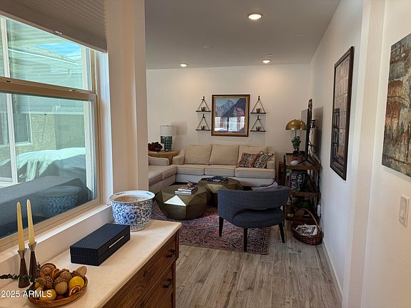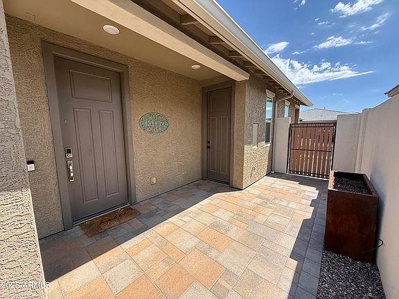 Upgraded and newer duplex in 55+ Victory is ready for you to move into! 2 beds/2.5 baths/2 car garage includes separate casita for privacy. Wood look tile flooring everywhere except bedrooms. Impressive kitchen with stainless steel appliances, quartz counters, tiled backsplash large island and shaker cabinets. All appliances included. Private courtyard and backyard with pavers, turf and water feature. Enjoy all the resort style amenities that the active adult community of Victory has to offer including 4 pools, tennis & pickleball courts, golf, fitness center and more!