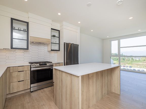 SEE VIRTUAL TOUR! Experience elevated living in Langley's Yorkson neighborhood. Welcome to the Ellery, a 2024 concrete built development by award winning developer, Isle of Mann! This top floor 2 bed, 2 bath unit features floor-to-ceiling windows w/ views from each room, designer finishes, living room feature wall, spa-inspired bathrooms, built in cabinetry, and AC throughout. Open concept kitchen w/ island, quartz counters, gas range, 2 toned cabinets/drawers, s/s appliances, wide plank flooring. Extend your living space on the rooftop deck complete w/ covered sitting area, kids play area and garden plots. Unit comes w/ 1 EV parking stall and large Bike and Storage Lockers. Don’t miss your chance to see this unit in person and what sets it apart! Call today!