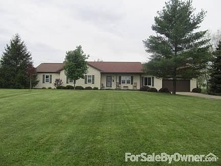 This country home is 1808 sq ft and was built in 1987. It is in mint condition and sits on 5 acres with a 2.5 acre pasture and livestock barn. The home has 3 bedrooms and 2 full baths and crawl space. There is a open kitchen that comes with all appliances. There is an additional room that could be used as an office. The living room features a rustic brick wall with a gas fireplace. The master bedroom features a large sliding glass door and very large walk-in closet. The garge is finished and insulated. Home is heated with a heat pump that was new in 2009. The landscaping is very appealing. Large trees are featured throughout the property. There is pleanty of room for gardens. There is a in-ground dog containment system. The barn is 32 X 36 and features 3 stalls, a feed room, and a garage side for tractors and/or cars. There is an additional outbuilding as well that measures 10 X 12. Additional property info: http://www.forsalebyowner.com/listing/3-bed-Single-Family-home-for-sale-by-owner-20615-Bolender-Ponitus-Road-43113/23979214?provider_id=28079