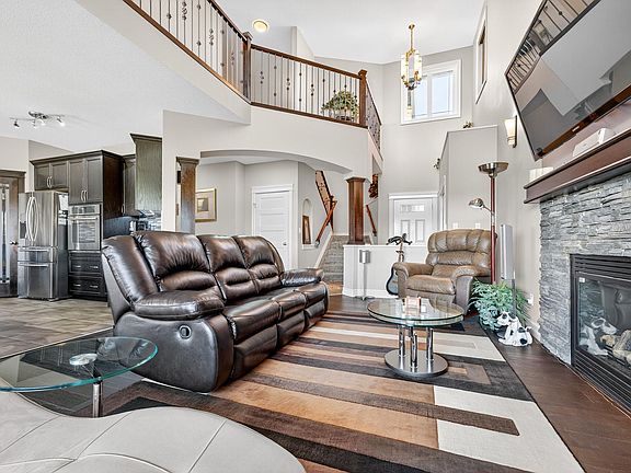 Welcome to this stunning 2-storey walkout in the desirable community of Trumpeter, offering rare lake views right from your backyard. The main floor is highlighted by soaring ceilings in the open-to-above living room, anchored by a stone fireplace and large windows that flood the space with natural light. The gourmet kitchen features granite counters, rich cabinetry, stainless steel appliances, a spacious island, and direct access to the dining area and deck overlooking the water. Upstairs, you’ll find 3 bedrooms, including a serene primary retreat with a private balcony, walk-in closet, and spa-inspired ensuite. The unfinished walkout basement leads to a beautifully landscaped yard with a stone patio, perfect for evenings around the fire while enjoying peaceful lake scenery. This property combines elegant interiors with a natural setting, creating a home that is both welcoming and impressive, while the location offers quick access to nearby parks, trails, and the conveniences of St. Albert and Edmonton.
